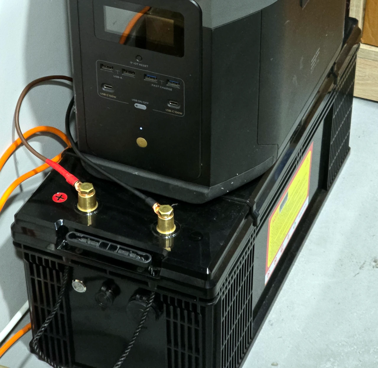 Далі підключаєм нашу додаткову батарею через клеми в соняшний порт Ecoflow.