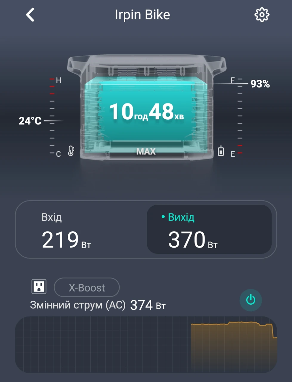 Те чого хотілося досягти, — досягнуто. На скріншоті видно, як іде заряд із соняшного порту, тобто з нашої додаткової батареї,